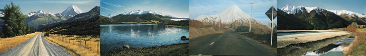 many times, and from which more paintings may well be inspired. The day was perfect. Although it was winter, it was brilliantly sunny and warm. Not a cloud in the sky. There seemed to be plenty of snow on Red Hill but the sign indicated that the Mt Olympus ski field further on down the road was closed…someone else’s afternoon off? The sign reading 'Mt Olympus' relates to a ski field accessed further on from Harper Rd, which is the turn off to the left in this painting. The mountain depicted here is Red Hill (1641metres). Even though the intersection of Harper and Lyndon roads is well off the beaten track many Christchurch locals seem to know this corner… Harper Road on the left takes you past tiny lakes, which can be frozen in winter, to a small and quaint settlement of holiday homes on the far shores of magnificent Lake Coleridge. It’s an awesome drive, but it’s on a difficult and narrow road of dirt and gravel. Lyndon Road, the “good weather only” road straight ahead winds gently uphill to Lake Lyndon and Porters Pass. This is an amazing drive, which should be taken with extreme care after a fresh fall of snow… if the road is open. Original painting