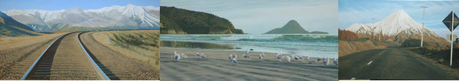 The service celebrated twenty years of traversing the Southern Alps on November 22, 2007. When it began in 1987, passenger numbers were around 25,000 a year and by the 2006 / 07 year they were up to 200,000. I based the oil painting ‘TranzAlpine Journey’ on a section of the TranzAlpine rail route near Lake Sarah, very close to where ‘Strolling the TranzAlpine’ originated. Painting the TranzAlpine train was not my objective the day I went into the mountains to photograph a train… Circa